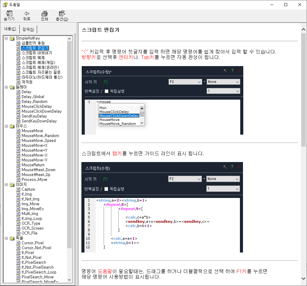 - 스크립트 도움말 특수키 관련 업데이트 ( 22-04-17 (Ver2.5.1)
