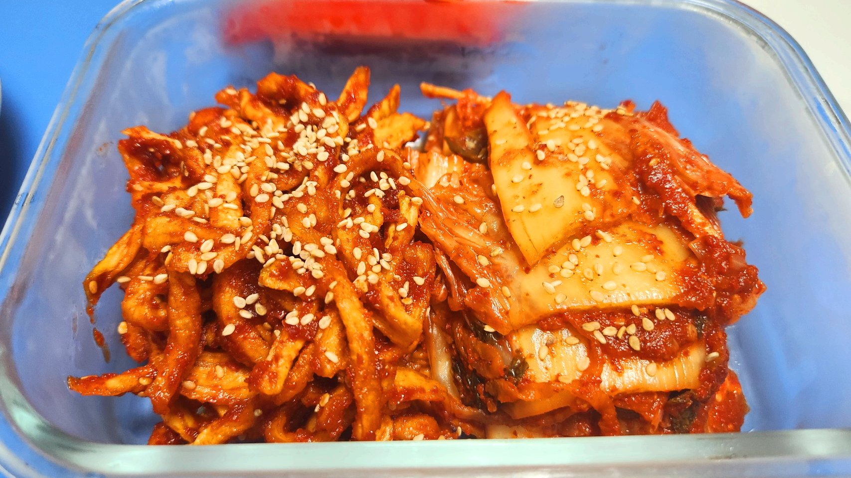 고기는 몇 번 씹지도 않았는데 젤라틴처럼 녹아 사라지고, 오독오독 씹히는 무말랭이의 식감만 기분 좋게 남습니다.