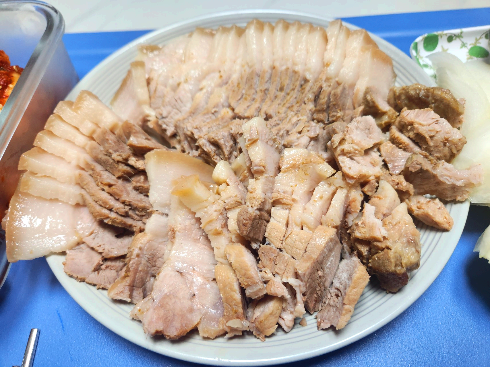 수육을 먹기 위해 이 반찬들을 준비했다고 해도 과언이 아닙니다. 이제 고기를 삶을 차례입니다.